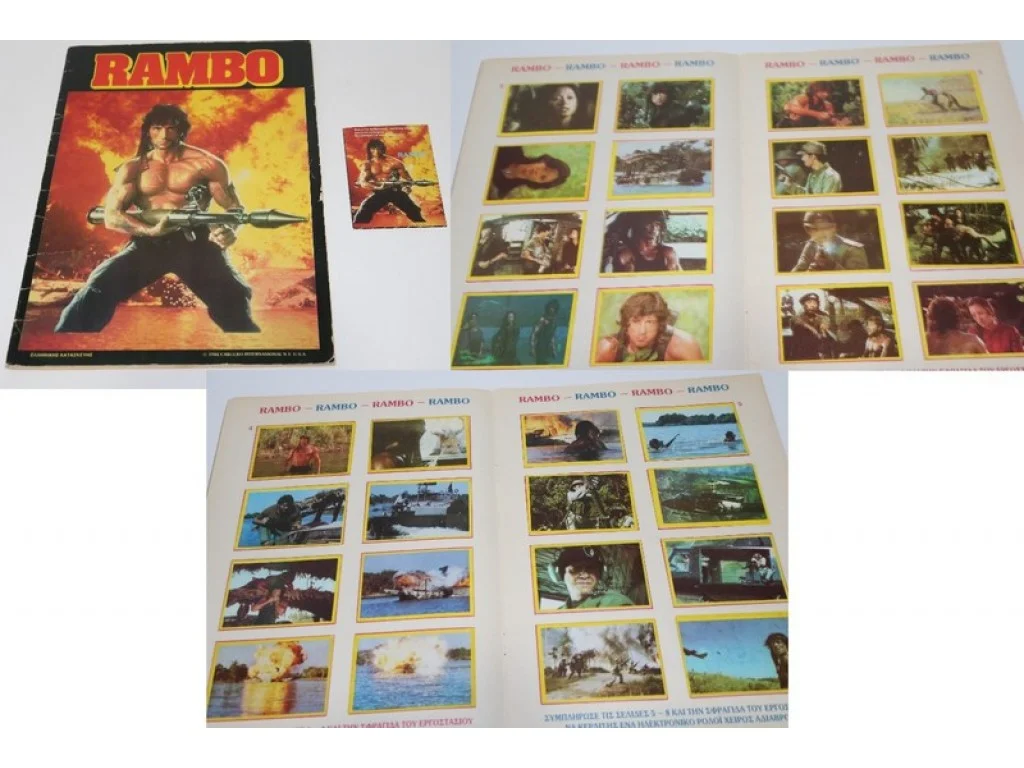 Σπάνιο και συλλεκτικό άλμπουμ Ράμπο, από την έκδοση Γιαννάκη, πλήρως συμπληρωμένο, που αποτελεί ένα μοναδικό κομμάτι για τους συλλέκτες νοσταλγικών εκδόσεων. Το άλμπουμ συνοδεύεται από ένα αυθεντικό άδειο φακελάκι, προσθέτοντας ακόμη μεγαλύτερη συλλεκτική αξία.