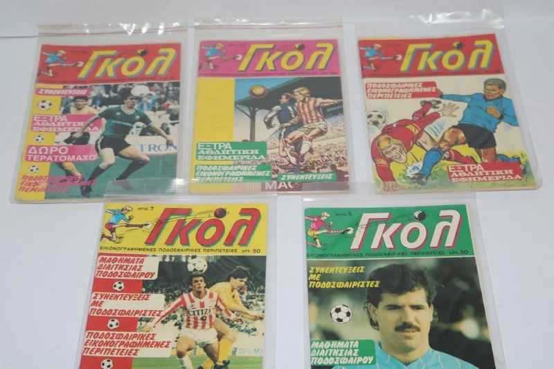 Μια αυθεντική συλλογή από τα αγαπημένα ποδοσφαιρικά κόμικ “Γκολ”, που σημάδεψαν τις δεκαετίες του ’70 και ’80, με τα τεύχη 4, 5, 7, 22 και 66. Το περιοδικό “Γκολ” υπήρξε ένα από τα πιο αγαπημένα αναγνώσματα για μικρούς και μεγάλους φίλους της στρογγυλής θεάς, συνδυάζοντας ποδοσφαιρική δράση, ήρωες γεμάτους πάθος για το άθλημα και σενάρια γεμάτα σασπένς και συγκίνηση.