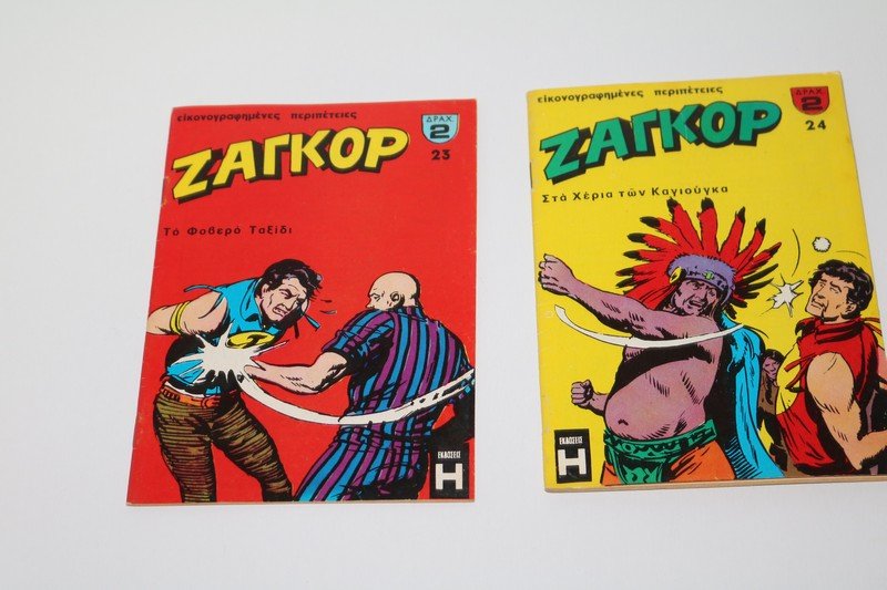 Η σειρά Ζαγκόρ Κόμιξ κυκλοφόρησε στην Ελλάδα τη δεκαετία του ’70, γνωρίζοντας τεράστια επιτυχία χάρη στις συναρπαστικές ιστορίες, τη χαρακτηριστική εικονογράφηση και τη μοναδική ατμόσφαιρα περιπέτειας. Τα τεύχη 23 και 24 ανήκουν σε εκείνη την κλασική περίοδο της πρώτης κυκλοφορίας και είναι δυσεύρετα, με έντονα εξώφυλλα και πλοκές που συνδυάζουν δράση, μυστήριο και ανθρωπιά.