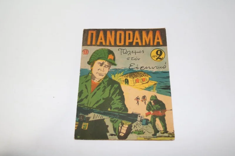 Το Κόμιξ Πανόραμα Τεύχος 11 περιλαμβάνει την πολεμική περιπέτεια “Πόλεμος στον Ειρηνικό”, μια συναρπαστική ιστορία με φόντο τα γεγονότα του Β’ Παγκοσμίου Πολέμου. Μέσα από έντονες σκηνές δράσης και στρατιωτικές επιχειρήσεις, το κόμικ μεταφέρει τον αναγνώστη στα πεδία των μαχών του Ειρηνικού, όπου η επιβίωση εξαρτάται από θάρρος, στρατηγική και αυταπάρνηση.