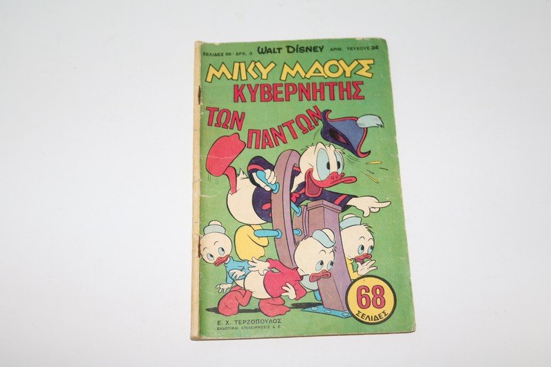 Σπάνιο τεύχος της κλασικής σειράς Μίκυ Μάους, το τεύχος 34, σε πολύ καλή συλλεκτική κατάσταση. Το εξώφυλλο και οι σελίδες διατηρούνται καθαρές και προσεγμένες, με μόνο ήπιες φυσιολογικές φθορές λόγω ηλικίας, χωρίς σκισίματα ή σοβαρές ζημιές.
