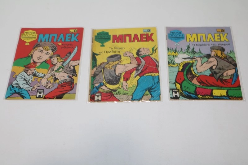 Σετ τριών αυθεντικών τεύχων της κλασικής σειράς Μπλεκ, με συναρπαστικές περιπέτειες δράσης και ηρωισμού. Τα τεύχη διαθέτουν χαρακτηριστική εικονογράφηση της εποχής και αποτελούν σπάνιο συλλεκτικό αντικείμενο για λάτρεις των ελληνικών vintage κόμικς.