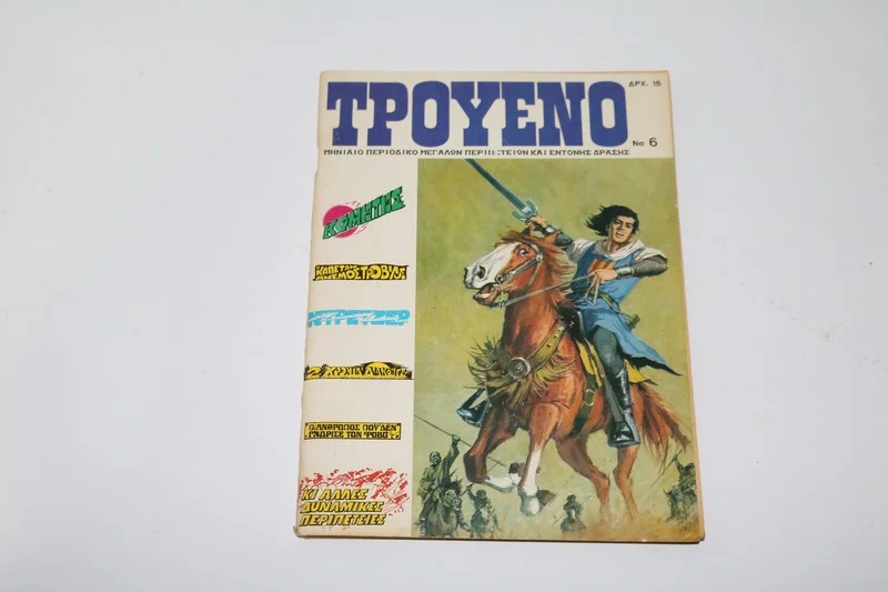 Το “Κόμιξ Τρουένο” Τεύχος 6 αποτελεί κομμάτι μιας από τις πιο αγαπημένες σειρές περιπετειών που κυκλοφόρησαν στην Ελλάδα κατά τη δεκαετία του ’70. Ο θρυλικός ήρωας Καπετάν Τρουένο, γεννημένος στην Ισπανία, έγινε γρήγορα ιδιαίτερα δημοφιλής χάρη στις συναρπαστικές ιστορίες του που συνδυάζουν ιπποτικά κατορθώματα, φαντασία, δράση και ηρωισμό.
